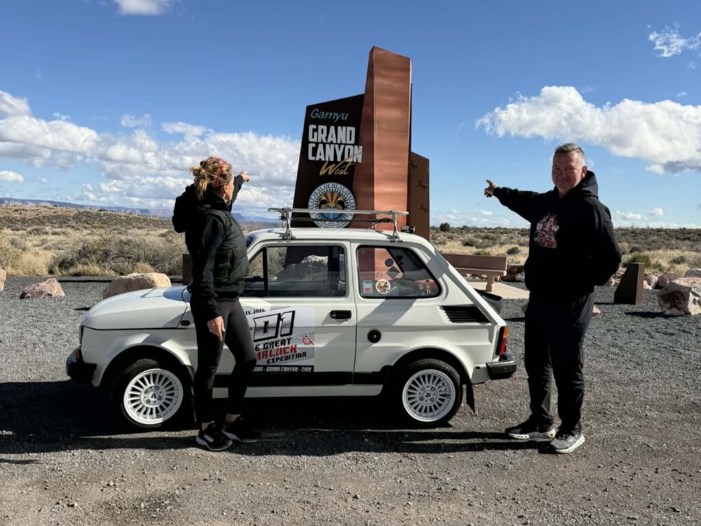 Seeing 14 of these tiny cars cruising past the Grand Canyon? That's pure Polish magic.